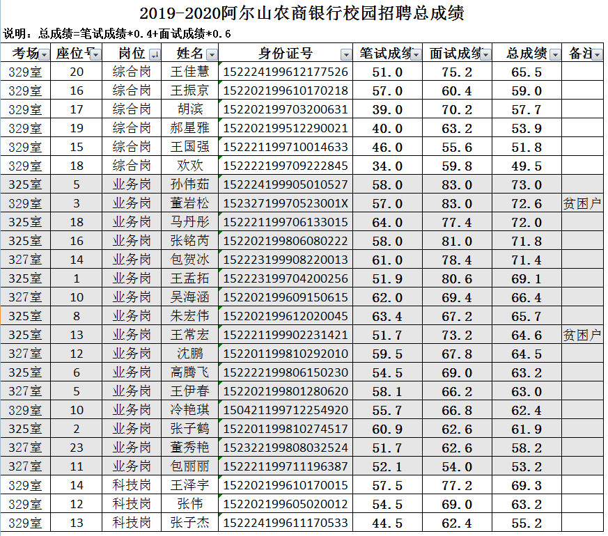 附件:阿爾山農(nóng)商銀行2019-2020年校園招聘總成績(jī)。