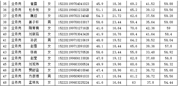 附件:烏蘭浩特市農(nóng)村信用合作聯(lián)社2019-2020年校園招聘總成績
