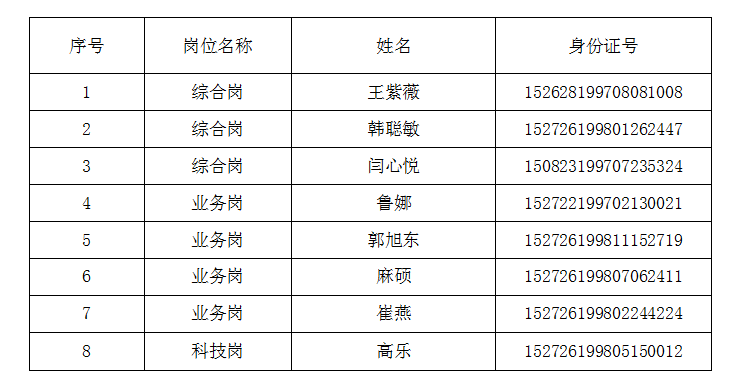 經(jīng)過(guò)簡(jiǎn)歷甄選、資格審核、面試和筆試等環(huán)節(jié),根據(jù)招錄規(guī)則及各崗位成績(jī)排名,以下8人擬定為杭錦旗農(nóng)信社本次校園招聘入圍名單?,F(xiàn)予以公示,公示期5天。